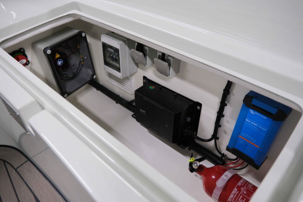 Unsere Hybridanlage wurde entwickelt, um nahtlos zwischen Diesel- und Elektroantrieb zu wechseln, sodass Sie sowohl bei höheren Geschwindigkeiten als auch in ruhigen Gewässern von optimaler Effizienz profitieren können.