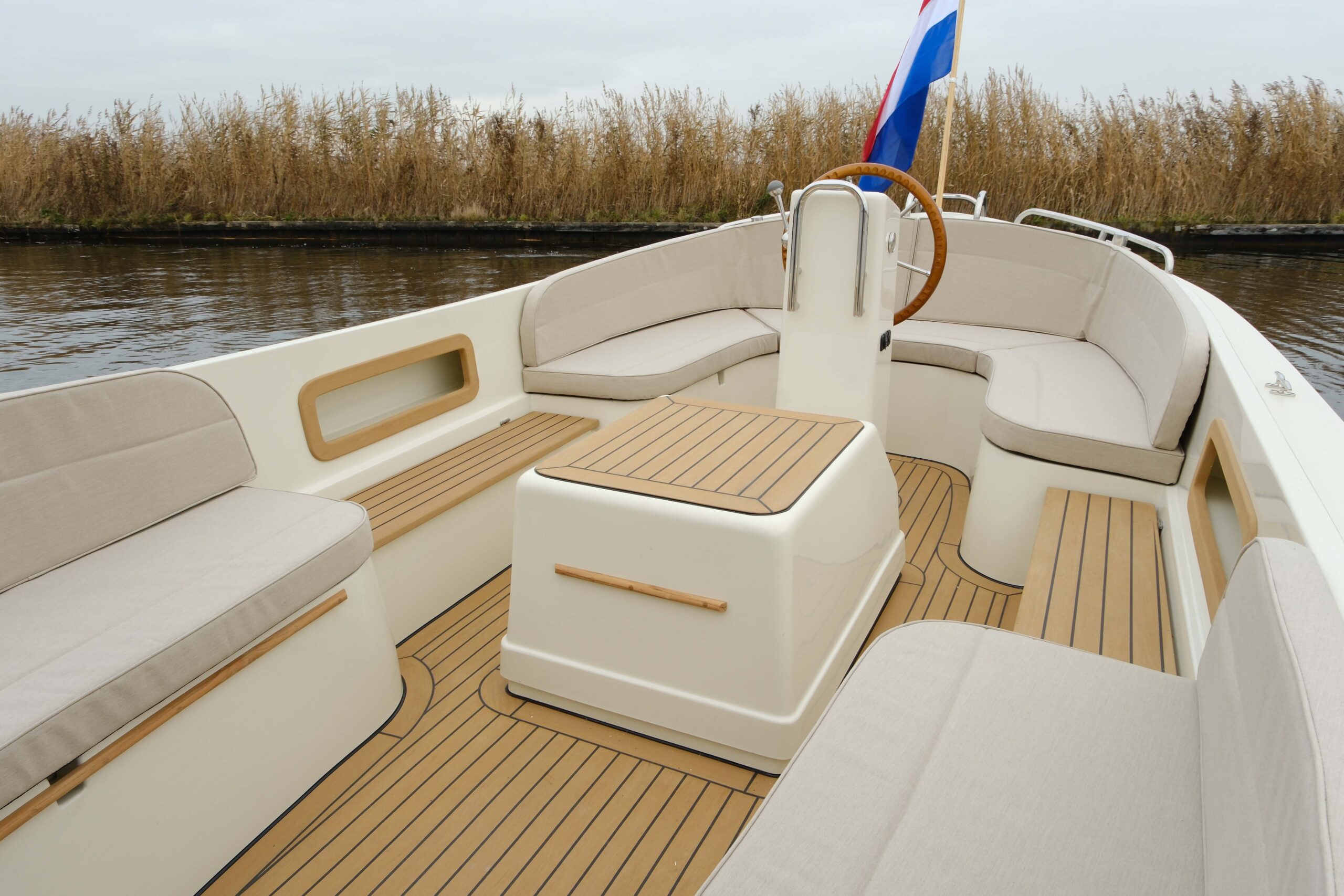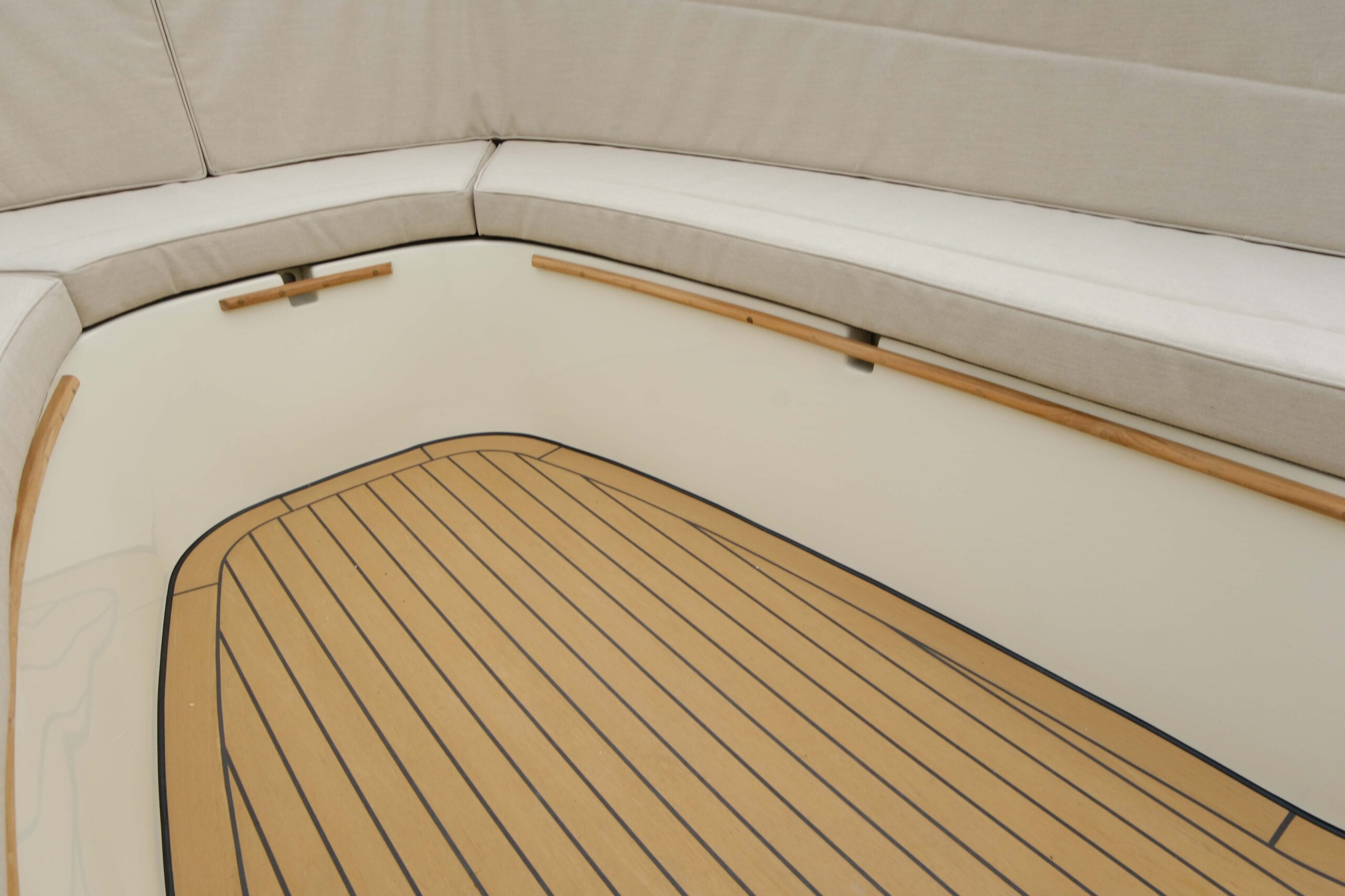- Synthetic teak floor, fully glued and sealed